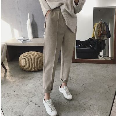 秋冬 ラシャ 厚手 ハーレムパンツ レディース ゆったり ジョガーパンツ ストレート カジュアル ロングズボン