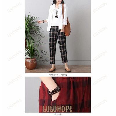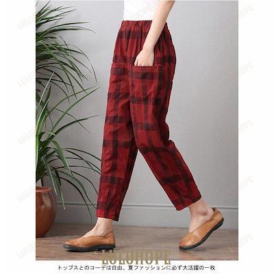サルエルパンツ 九分丈 レディース リネンパンツ チェック柄 パンツ ゆったり ウエストゴム 女性 九分丈パンツ 夏 薄手 爽やか お洒落