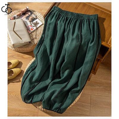 パンツ ズボン 配色 麻綿 ストライプ サルエルパンツ レディース ボトムス