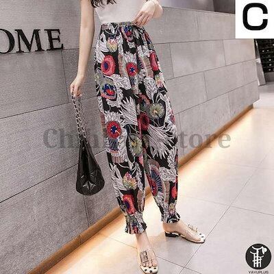 サルエルパンツ レディース パンツ カジュアルパンツ ロング丈 無地 春夏 ウエストゴム ボトムス おしゃれ カジュアル