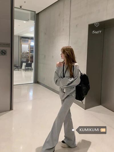 2024 秋冬 韓国 かわいい レディース 無地 普段使い長袖トップスレトロ2点セット黑白パーカーセットアップブルサイズ丈春カジュアルスポーツファッション系通学学生袖お出かけアップシルエット上下羽織り