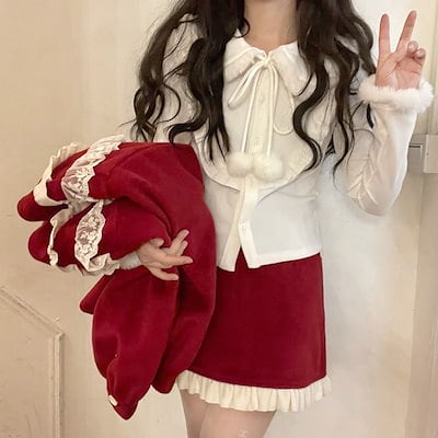 秋冬 新年ファッション クリスマスコフレ レッド ショート トップス スカート セット脚魅せミニスカート サンタコス 仮装 コスプレ レディース