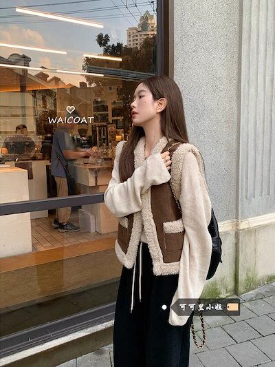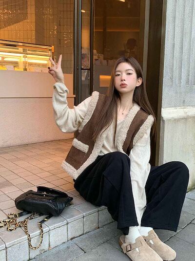 秋冬 トップス ベスト 厚手 韓国アウターゆったり丈長め カジュアルショートかわいい暖かい 羽織り防寒ファッションフェイクシルエットレディースノースリーブ色っぽ 女っぽ きれいめ裏サイズエコ丈