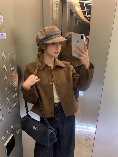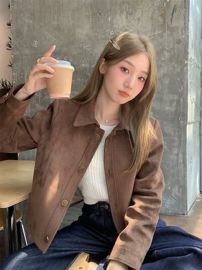 2024秋冬 長袖 ジャケット かわいい 韓国 スタンドネック アウタートップス 羽織り合成レディースフェイクコーデカジュアルシルエットゆったりファッション系サイズ 色っぽ 女っぽきれいめ大人丈