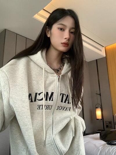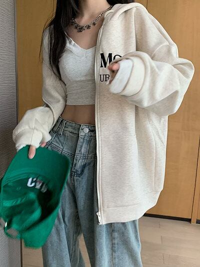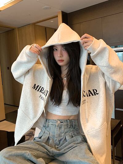 2024 秋冬トップスかわいいパーカーフード付き韓国風長袖ゆったり細見え白黒おしゃれレトロチャッシルエット甘め大人っぽ韓国フルサイズファッション系ルーズレディースサイド袖お出かけ学生通学トラック羽織り