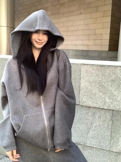 2024秋冬 韓国 かわいい レディース 無地 フード付き長袖アウターレトロセット黑白フーディーブルサイズ丈トップス春カジュアルスポーツファッション系通学学生袖お出かけアップシルエットトラック羽織り