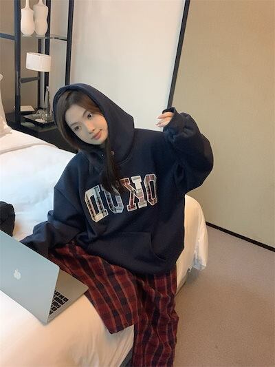 2024秋冬トップス厚手裹起毛韓国風長袖レトロパーカーカジュアルルーズファッション系ゆったり大人っぽかわいいレディースフード付き羽織りサイズきれいめシルエットトレーナー 大学生通学高校