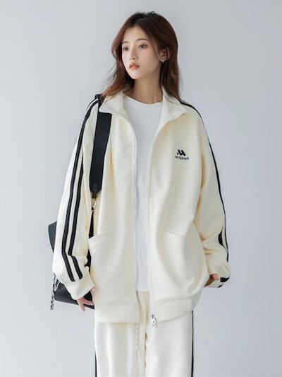 2024 秋冬 2点セット トップス ハイネック スタンドネック 羽織り ショート丈 フルパーカー ルーズ サイド上下ボトムス ストレート系冬 ゆったりサイズワイドシルエットリラックストラック