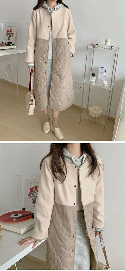 アウター コート レディース 秋 冬 ロング丈 切り替え キルティングコート ノーカラー コート ロングコート あったか 厚手 スエードコート アウター 冬 秋 ビッグシルエット オーバーサイズ 大き