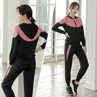 ファッションヨガウェア セットアップ ヨガトップス ヨガフィットネス 女性用スポーツウェアゆったりランニング通気性速乾ジャケット秋冬新作スーツ レディース 上下セット 運動セット