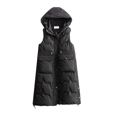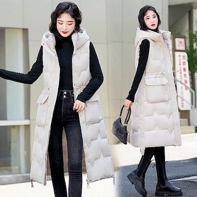 冬アウター コート 大きいサイズ ロング 膝 コットンウエストコート 厚手 ベスト フード付き 秋冬 ノースリーブ ジャケット レディース 防寒 韓国ファッション