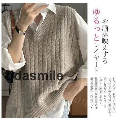 ベスト ニット プルオーバー レディース 新作 Vネック レイヤード 秋冬 春 体型カバー セーター 柔らかい ゆったり 保温 アウター 可愛い 大人 学生 通勤 通学