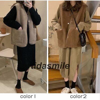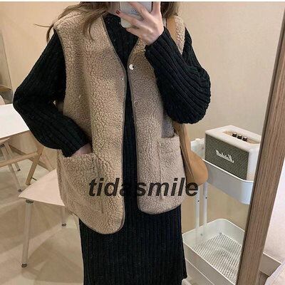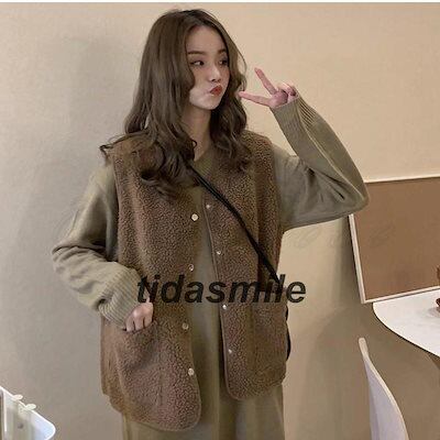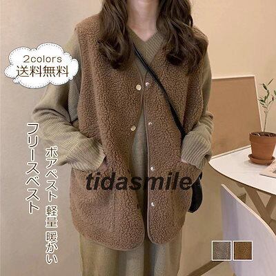 フリースベスト レディース ボアベスト 無地 Vネック トップス カジュアル ポケット付き もこもこ 軽量 暖かい 秋冬 きれいめ おしゃれ