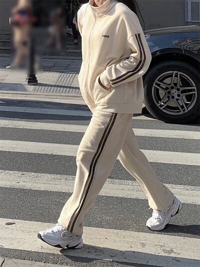 2024 秋冬 2点セット トップス お出かけ 羽織り ショート丈 セットアップフルパーカーラウンドヘムルーズ サイド上下ボトムス ストレート系冬 ゆったりサイズワイドシルエットリラックストラック