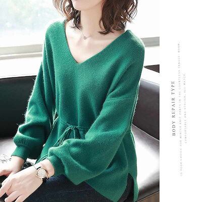 セーター vネック ニット ニットセーター バルーン袖 トップス レディース プルオーバー セーター 秋 冬 ストレッチ リブ付き 長袖ニット vネックセーター アウター ニットソー カットソー ニッ