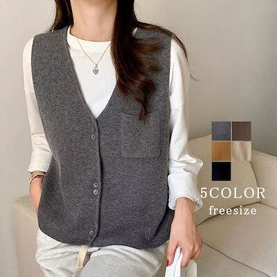 ニットベスト レディース Vネック 前開き セーター トップス ノースリーブ カーディガン おしゃれ きれいめ カジュアル アウター 薄手 シンプル 無地 レイヤード 重ね着 柔らかい 秋新作