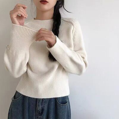 ニット レディース 秋冬 長袖 カットソー 春 ニットプルオーバー uネック インナー クルーネック セーター 秋 冬 トップス プルオーバー ニットセーター アウター ベーシック リブニット 無地