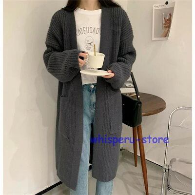 ニットカーディガン レディース アウター レディース ライトアウター トップス カーディガン ロングカーディガン 秋 冬 春 グレー ネイビー あんずいろ カーキ