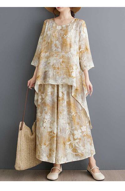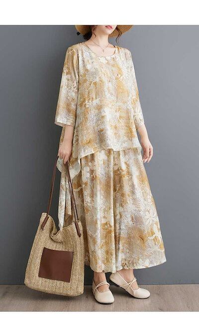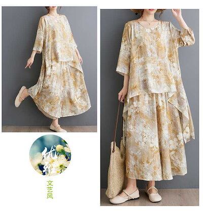 「ファットガール」 2024夏新品 上下セット ロングブラウス+ワイドパンツ 大きいサイズ 体型カバー レディース 着痩せ セットアップ メガ割