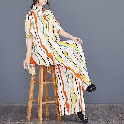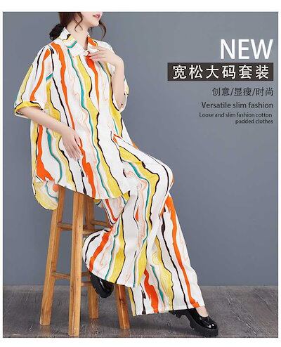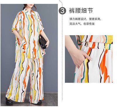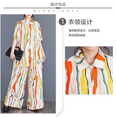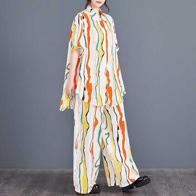 「ファットガール」 2024夏新品 上下セット ロングシャツ+ワイドパンツ 大きいサイズ 体型カバー レディース セットアップ メガ割