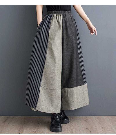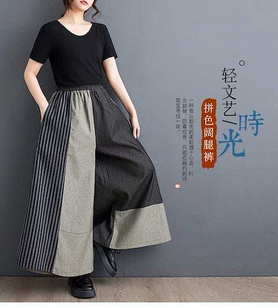 「ファットガール」 2024夏新品 デニムドッキング ワイドパンツ 大きいサイズ キュロットスカート 体型カバー ゴム レディース フレア ロングパンツ メガ割