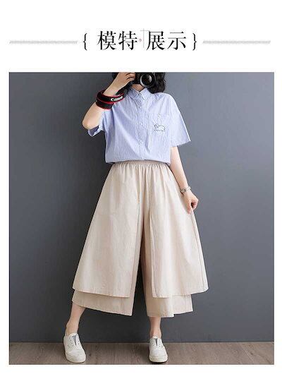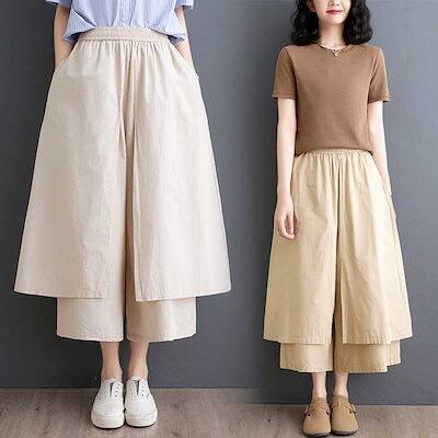 「ファットガール」 2024夏新品 ワイドパンツ キュロットスカート 無地 ハイウエスト レイヤード ニセ2SET レディース ロングパンツ メガ割