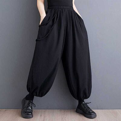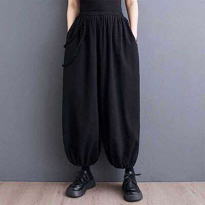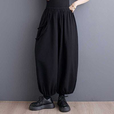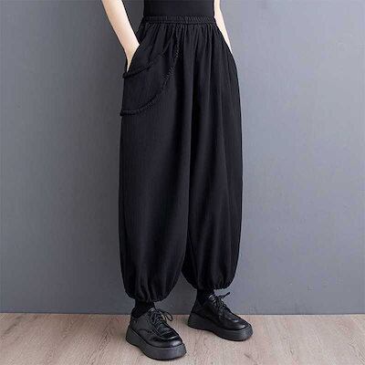 「ファットガール」 2024春夏 ロングパンツ 九分丈 テーパードパンツ ゴム ワイドパンツ 体型カバー 大きいサイズ ゆったり レディース