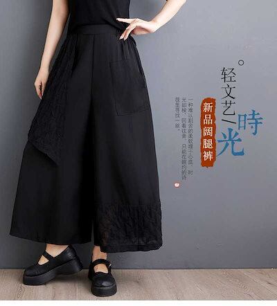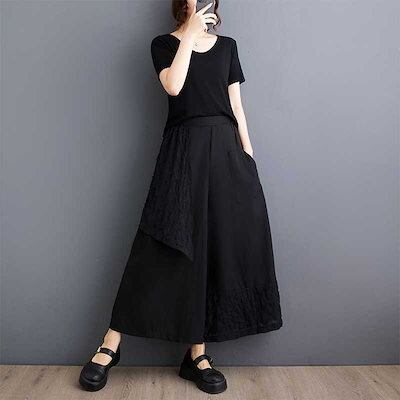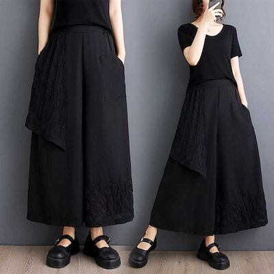 「ファットガール」 2024春夏 キュロットスカート ワイドパンツ 九分丈 ゴム 体型カバー 大きいサイズ ゆったり レディース