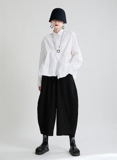 【J.Fashion】 秋冬 レトロ サルエルパンツ レディース ワイドパンツ スラックス ゆる 九分丈 厚手 レディース ロングパンツ メガ割