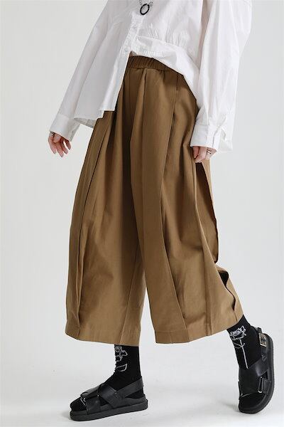 【J.Fashion】 ゆったり 九分丈 ワイドパンツ ゴム ハイウエスト スラックス 通勤 レディース 綿麻 パンツ メガ割