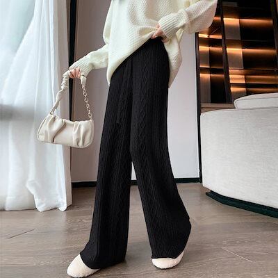 ニット ツイスト ワイドパンツ ニューデザイン 春秋 ハイウェスト ドローストリング 着痩せ デザイン感 カジュアルパンツ ジョガーパンツ