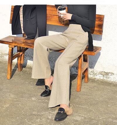 【2枚購入で 3oo円OFF! 】ラシャズボン 着痩せワイドパンツ ズボン 九分丈パンツ ストレートパンツ ロイワイドパンツ タイプ レディースパンツ ゆったり 韓国レディースファッション 脚長効果!