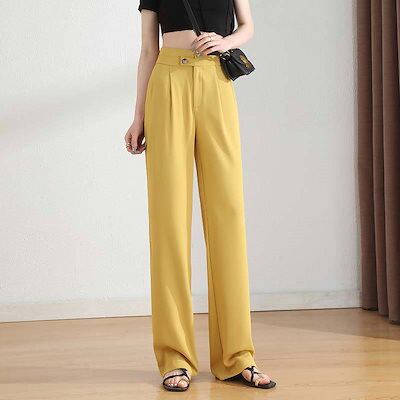 2024 スラックス パンツ レディース 秋冬新ハイウエストパンツ韓国風カジュアルパンツストレートパンツワイドレッグパンツ
