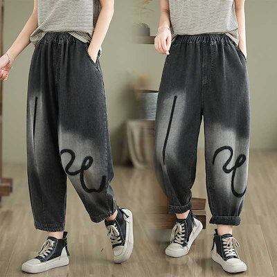 「ファットガール」 2024夏新品 レトロ デニム ワイドパンツ 薄手 九分丈 大きいサイズ 体型カバー レディース ロングパンツ メガ割