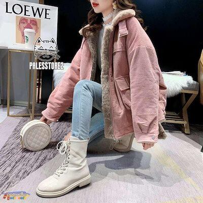 アウター レディース 冬 カジュアル ブルゾン ジャケットコーデュロイ 裏ファー 暖かボア デイリー お呼ばれ デート アイボリー ピンク レッド パープル