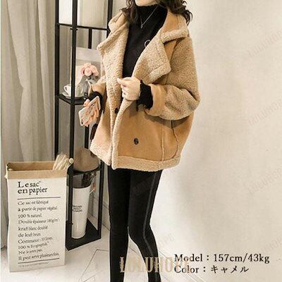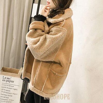 切替ムートンジャケット 韓国風 冬物 レディース 裏起毛ジャンパー 厚手 フリースブルゾン もこもこ ボアコート 暖かい フェイクムートン 着やせ
