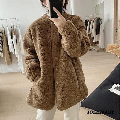 ボアジャケット ボアブルゾン レディース ボアコート もこもこ おしゃれ フリース 暖かい ゆったり 可愛い カジュアル シンプル 秋冬