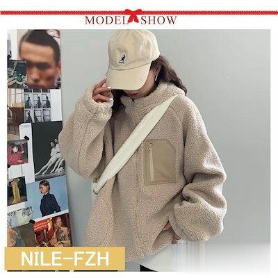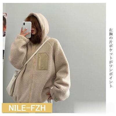 ボア ブルゾン レディース アウター コート ジップアップ 長袖 ポケット付き フード付き 防寒 大人 体型カバー ゆったり ビッグシルエット 秋 冬