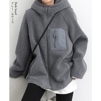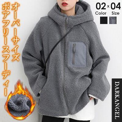 ボア ブルゾン レディース フード付き フーディー アウター 秋冬 もこもこ ジップアップパーカー 暖かい 防寒着 オーバーサイズボアフリース