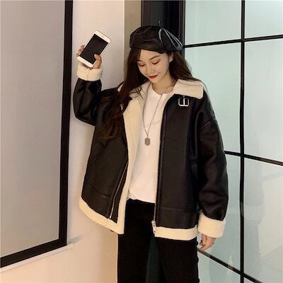 レザージャケット もこもこ アウター ボア ブルゾン ジャケット コート レディース コーデ ショー