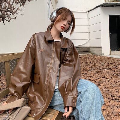 今流行りのジャケット puレザージャケット レディース カジュアル かっこいい バイク ショートジャケット ファッション