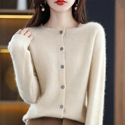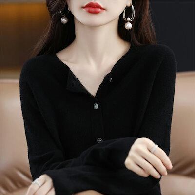 ニットカーディガン レディース 秋 冬 長袖 クルーネック ロングカーディガンニット セーター 厚手ショート トップス アウター 羽織り 前開き ボタン付き お洒落 カジュアル 大人可愛い 通勤 無地