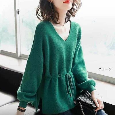 セーター vネック ニット ニットセーター バルーン袖 トップス レディース プルオーバー セーター 秋 冬 ストレッチ リブ付き 長袖ニット vネックセーター アウター ニットソー カットソー ニッ