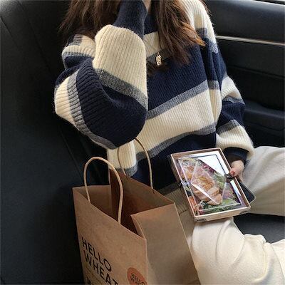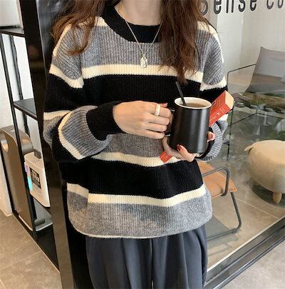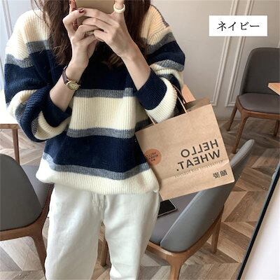 ニット トップス レディース セーター ニットセーター ボーダー柄 秋冬 チュニック ニットソー プルオーバー オーバーサイズ アウター 大きいサイズ セーター 柔らかい お洒落