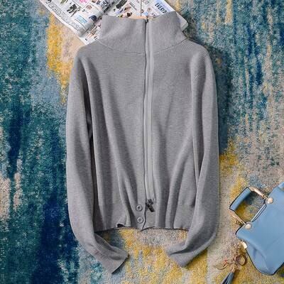 衿2way ジップアップ ニット ジャケット レディース アウター トップス ハイネック セーター ミディ丈 前ファスナー ボタン 春 秋 シンプル カジュアル 大人 かっこいい メンズラ 大人可愛い