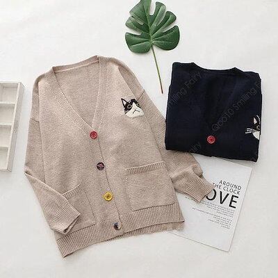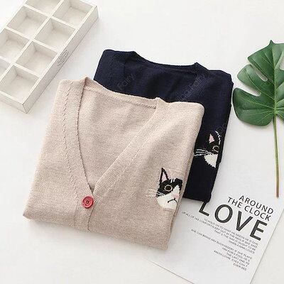 カーディガン レディース ニットカーディガン 秋 春 ニットトップス 羽織 コットン カーディガン 猫 ネコ アウター 森ガール 大人可愛い キレイめ 前開き 部屋着-46