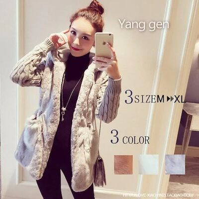 ファーコートニットコートモコモコボアコートミディアム丈アウターパーカーフード付きレディース防寒