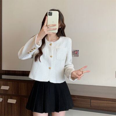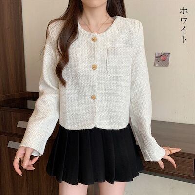 ジャケット ノーカラー ツイード ショート丈 金ボタン 羽織り オフィス ライトアウター きれいめ 秋冬 おすすめ レディース オシャレ トレンド 人気 プチプラ 韓国ファッション