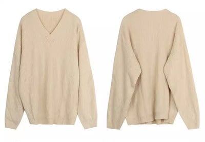 2色展開 デザインニッチ/Vネック長袖セーター レディース トップス ニット セーター アウター ロング 長袖 Vネック ストレート ヘッジ オーバーサイズ フェミニン ふっくら リブニット