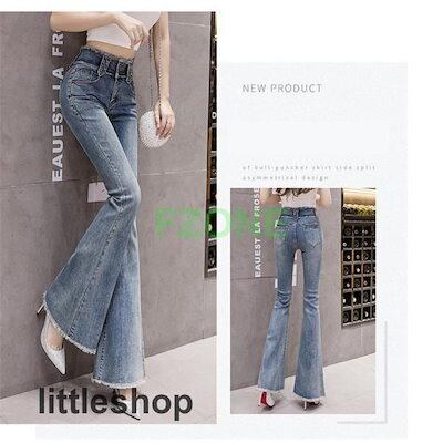 デニムフレアパンツ レディース ボトムス ジーンズ ブーツカット スリム スキニーパンツ ストリート オフィス 通勤 OL 脚長効果
